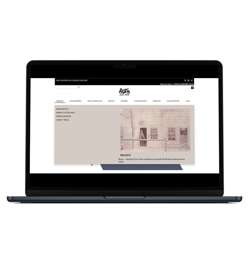 Burns 1876 is the oldest same-family owned Western retail business in the world. While their handmade leather and silver products display beautifully in the store, they had not yet figured out how to sell these luxury pieces online. I was asked to redesign their website in order to help users understand the brand story and feel comfortable buying high-end luxury items online.